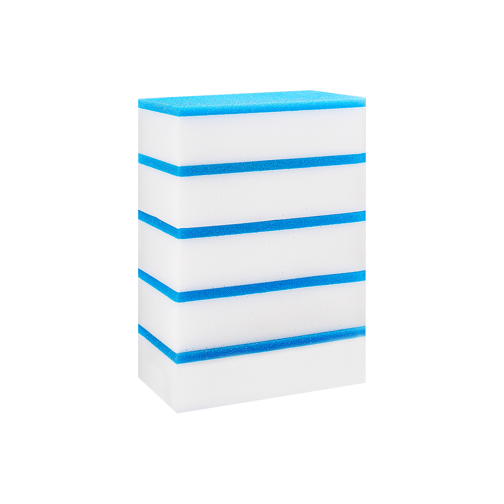 المواد: رغوة حجم العبوة: 16.5*11*11*6.5 سم وزن العبوة 5 قطع: 27.4 جرام 1 إسفنجة الحجم: 10.9*5.5*3.1 سم حجم الكرتون (72 كيسًا/كرتون، 5 قطع/كيس): 63*35*41 سم