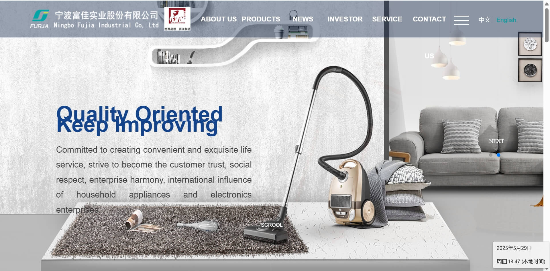 Ningbo Fujia Industrial, one of the best vacuum manufacturers, specializes in the research and development, design, production, and sales of intelligent cleaning small household appliances. Their product range encompasses wireless lithium battery vacuum cleaners, wired vacuum cleaners, intelligent sweeping robots, and multifunctional wireless mops.