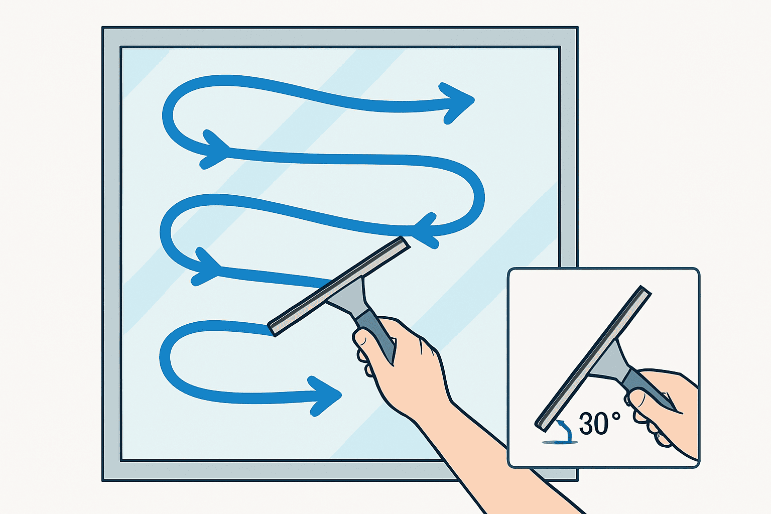 - Pull smoothly: Wipe the squeegee over the window in a single motion, overlapping by a bit.