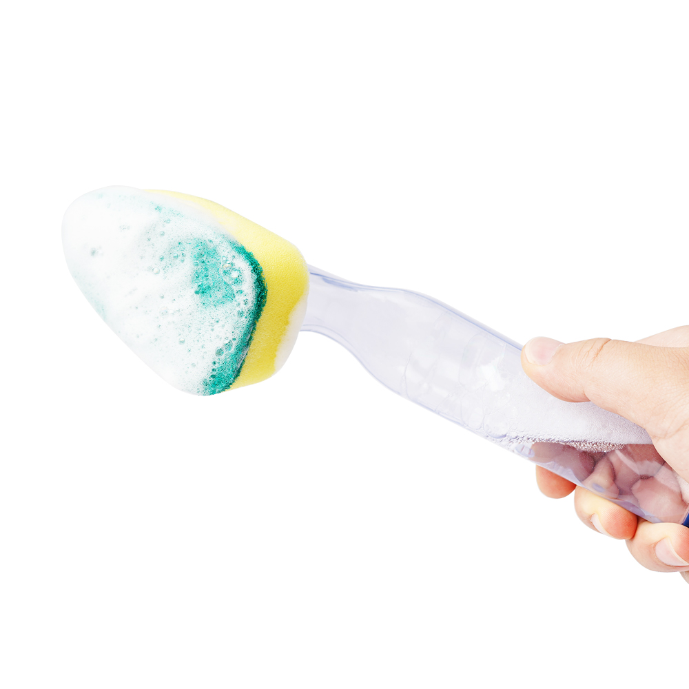 Auto Soap Flow: Soap can flow through the sponge head with gentle pressure.