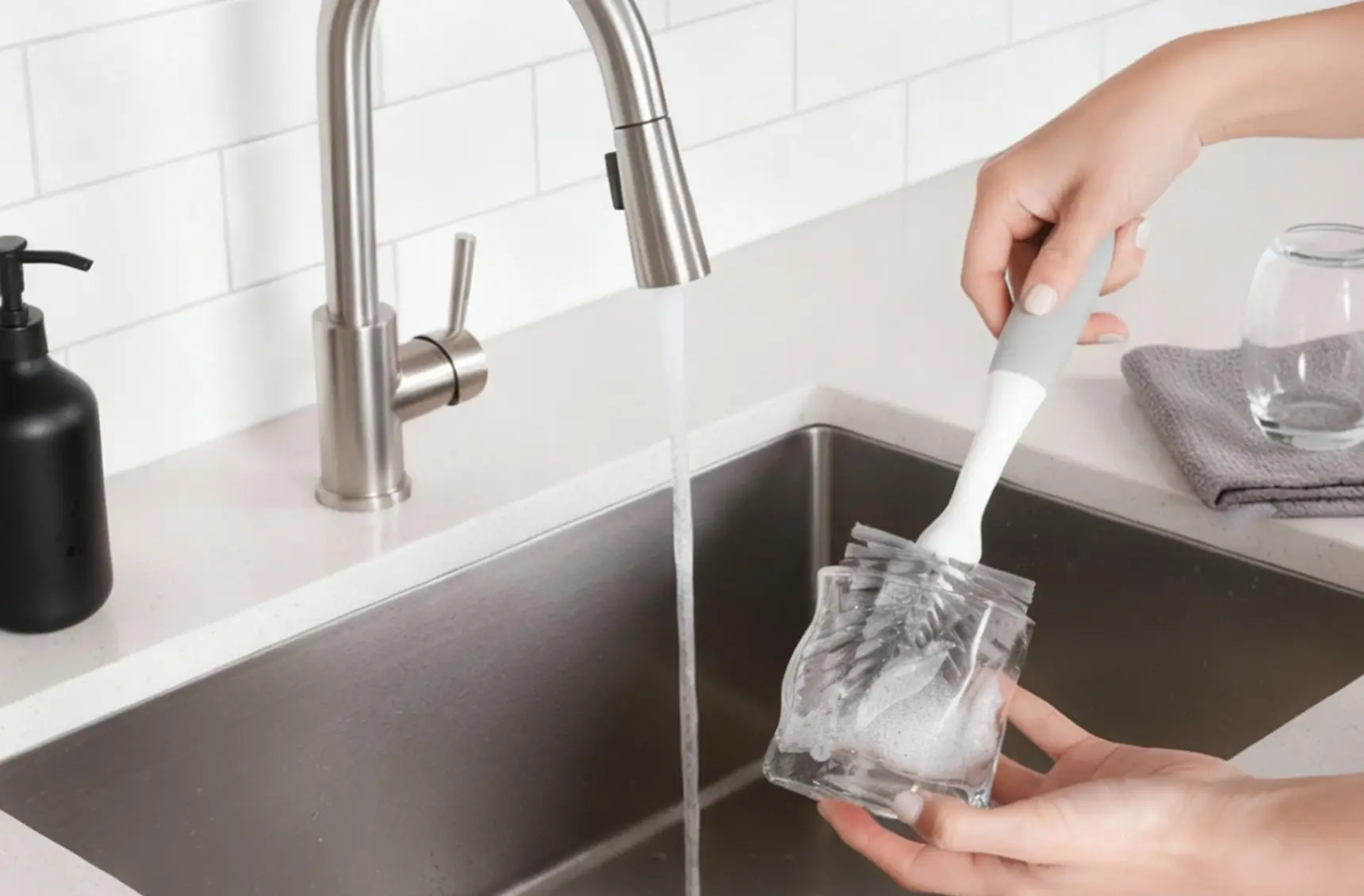 Soft but resilient bristles lift milk film, tea stains, and protein buildup without scratching glass, Tritan, or stainless. Angled and tapered heads reach seams and flat bottoms with less effort, and optional sponge or silicone tips boost foam and pick up fine residue. Stiffer cores improve control and reduce splashing at the sink.