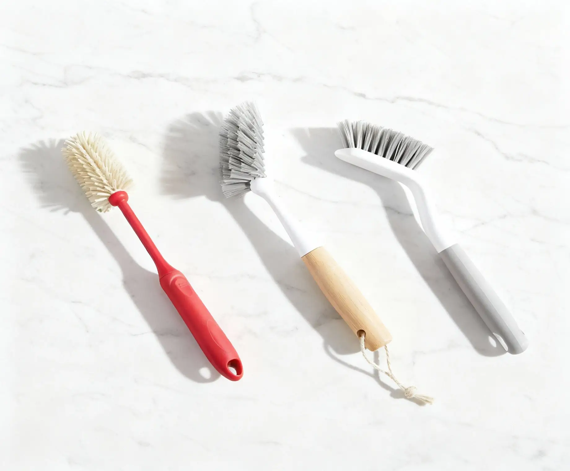 Select nylon, silicone, or sponge bristles; PP/TPR/stainless handles; and rust‑resistant steel cores. We tune head geometry, bristle density, and core stiffness for scratch‑free, effective cleaning.