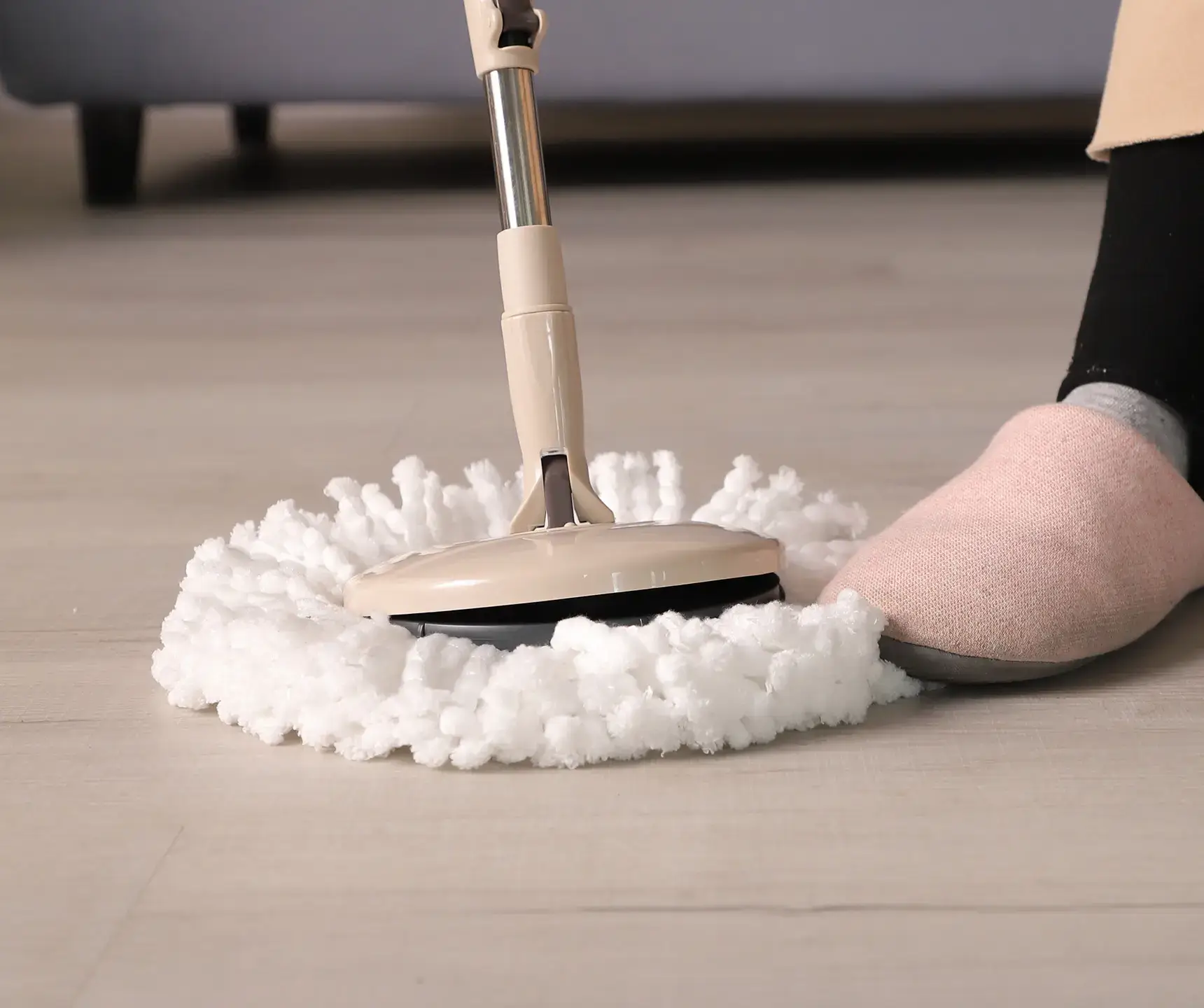 Wringer mechanisms are cycle-tested to confirm squeeze consistency and longevity. Spin systems use balanced bearings and reinforced pedals for smooth operation. Bucket walls and handles are designed for impact resistance and heavy loads. Microfiber pads are stitched for edge durability, and looped yarns are pull-tested to minimize shedding.